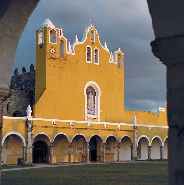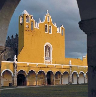 Izamal The City of Hills, located right in the middle of the Yucatan Penninsula, Izamal maybe the oldest city in Yucatan. Its history is very attached to religious events. Izamal was conquered by the Spaniards, and it was the monks in their eagerness to convert the Indians to Catholicism that gave the city its religious distinction. To this day, Izamal’s people are very devoted to Immaculate Virgin. An important sight in Izamal is the Franciscan Convent that was built from and over one of the Mayan pyramids. This convent is also famous for the story of the monk Fray Diego de Landa, its founder, who burned all the Indian crypts, and then feeling remorse for what he had done, tried to write all he could remember of the ways of the Indians in the “Relation of things of the Yucatan”. Pope John Paul II visited Izamal in 1993 and held a special meeting and Mass specifically for the indigenous people of the area. This has been one of Izamal’s claims to fame ever since. Note the beautiful restored altar piece, the stained glass window of St. Francis de Asissi, and the many statues along the walls. Izamal is a jewel of a colonial city, with just about all the buildings painted egg-yolk yellow, making all the town look like a movie set. Cabblestoned streets and colonial lamp posts complete the scenery. There are Mayan pyramids (Kinich Kakmo, the most important), colonial-style buildinags, parks and plazas, horses and buggies and lots of people for people watching. Visit the Community Museum, located under the Convent. Check out the horse and buggies that are by the plaza and can take you all over town. We hope you can vivit this part of the Yucatan State.