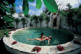 Kinan Spa at Maroma Resort and Spa Kinan is the Mayan word for the energy of the sun. Similar to the Asian concept pf Chi, Kinan it is often used to refer to the individual inner energy. Opened officially in March 2005, this fabulous addition to the luxurious Maroma on Mexico’s Riviera Maya offers a full range of spa services in unique environments ranging from treatment rooms with private gardens, open-air massage palapas and a rooftop yoga pavilion with 360-degree views of Maroma’s dual ecosystem the jungle and the sea. The Kinan Spa in the Riviera Maya was handcrafted by the same family of Mayan stonemasons that has been working with Maroma founder and architect, Jose Luis Moreno, for over three decades. Each building ant treatment room has been aligned to the stars to ensure positive energy flow so the body, mind and spirit are in harmony. White and cream stucco finishes, carved niches, handmade floor tiles with river stone borders, hand-hewn beams made from the native zapote trees and mahogany furnishings and gurgling fountains and pools surrounded by tropical gardens provide the authentic and soothing environment, while strategically placed windows and thatched alfresco corridors bring sunbeams, fresh ocean breezes and bird songs from the jungle. Healthy Yucatan-inspired cuisine is prepared by Maroma’s chef, which can be enjoyed poolside, in the open-air Cilantro Café or in the privacy of your treatment room. Spa packages that combine luxurious spa room accommodation with daily spa and fitness programs are available and can be custom built based on client preferences and needs.