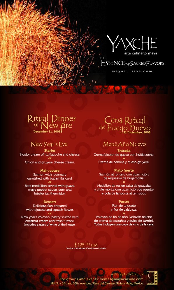Celebrate the new year in the spiritual tradition of the Mayas with Dinner at Yaxche on December 31st, New Year’s Eve.