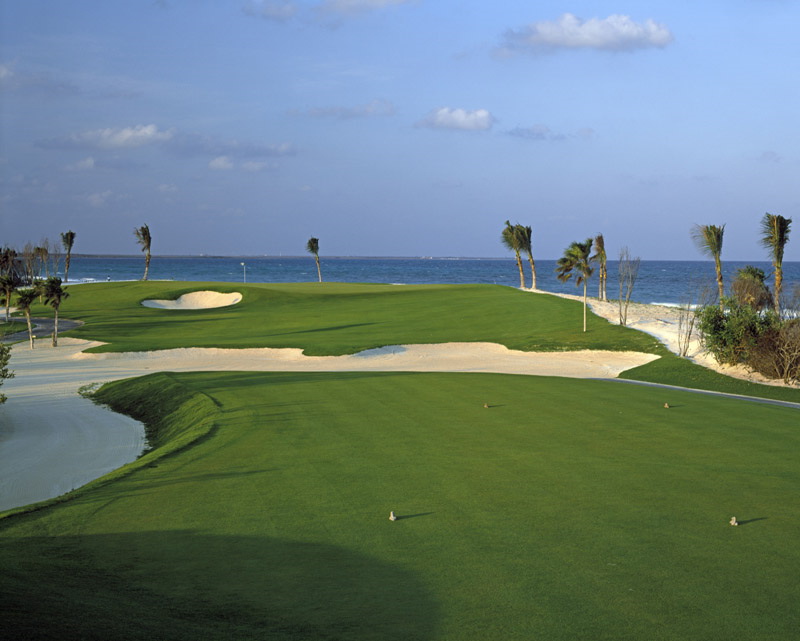 While the course is a standout, the surrounding golf amenities are equally as stunning. The handsome, Mayan influenced clubhouse rises above the 18th green and the adjoining practice facility and driving range are five star. Even more amazingly, with the resort’s unique canal system, golfers will be able to step out of their rooms and into a boat, which will ferry them to the first tee.