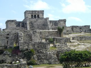 Fron Cancun Airport to Tulum Driving thru Riviera Maya We arrived at CUN about 10 AM and it was hot. Yes!!! Migra and customs were a snap, but an Avalon guy followed us almost outside USD 150 to see Avalon timeshares. No gracias, cono. Elite Rental Car, which we booked through www.cancuncd.com . The car was perfect and we exited the airport toward Cancun and picked up Route 307 South for our roughly 140 km drive to Tulum. Driving in Mexico, on 307 was no problem whatsoever. The road is fine, very wide until Playa del Carmen, then a standard 2 lane blacktop with wide shoulders. Many gas stations and a few police cars. Speeds were between 60-120 km/hr, averaging about 80 km/hr. Tulum is situated on the east and west sides of 307 and is about 10 blocks long. Tulum starts at the turn off to Coba. If you take the Coba road east, the other way, you head towards the beach and a road called Camino running north and south just off the beach. It is spotted with maybe 20-25 hotel cabanas and restaurants. The Camino is OK running south for about 2km, then it is a war zone. Pot holes?? Carters is more like it. You drive at 1 km/hr and still bottom out. It is drivable but very slow. But after about 2 km we arrived at LOS LIRIOS and our 2nd floor cabana right on the beach. Los Lirios (water lilies) is a beautiful place, with garden grounds, a great beach and wonderful large rooms with AC, balconies, hammocks, inside sitting area. No fan, no safe and no pool, but heaven. Too bad the restaurant is not as good. We were adamant about not leaving “our” beach and had lunch on the sand. Ceviche, guac and chicken tacos were OK, but a little pricey. Margs were good, but the second round very good. The food, with 4 margs and 2 waters was 460p. The next day, we spent less than that for three meals elsewhere. Tulum, the city, El Pueblo, is inland about 4-5 km and is fine. All the action seems to be right on 307, the main drag. The FOOD is GREAT!!! We saw smoke coming from a chimney, investigated and found Pollo Branco a little store with a giant flame grill with maybe 30 chickens on it. The man said 5-10 minutes, so we got 2 cocas and sat down and watched the world go buy. In a few minutes, we looked up as a pickup truck pulled up. The place now had about 15 locals in it, waiting. And worth the wait a whole chicken and then some (3 legs), tortillas, rice, beans and a salad, 3 cokes, 1 water 84p!! The exchange rate at the bank was 11.4 so, darn cheap! And the best chicken I, we ever had. Juicy, well done and mucho rico gusto maximo. We had dinner at Cetli in the Hotelito. Wow!! Alto cocina Mexicana smallish portions but absolutely wonderful, never before eaten or heard of (by us) dishes. Large plates with the food presented art! Cucarando (sp) was stunning slices of chicken with spinach ribbons. 70p I think. Politz was chicken with pepper and jelly superb! An unordered appetizer tray arrived with all sorts of goodies bread, butter in corn wrappings, empanadas, several salsas