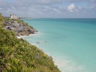 Fron Cancun Airport to Tulum Driving thru Riviera Maya We arrived at CUN about 10 AM and it was hot. Yes!!! Migra and customs were a snap, but an Avalon guy followed us almost outside USD 150 to see Avalon timeshares. No gracias, cono. Elite Rental Car, which we booked through www.cancuncd.com . The car was perfect and we exited the airport toward Cancun and picked up Route 307 South for our roughly 140 km drive to Tulum. Driving in Mexico, on 307 was no problem whatsoever. The road is fine, very wide until Playa del Carmen, then a standard 2 lane blacktop with wide shoulders. Many gas stations and a few police cars. Speeds were between 60-120 km/hr, averaging about 80 km/hr. Tulum is situated on the east and west sides of 307 and is about 10 blocks long. Tulum starts at the turn off to Coba. If you take the Coba road east, the other way, you head towards the beach and a road called Camino running north and south just off the beach. It is spotted with maybe 20-25 hotel cabanas and restaurants. The Camino is OK running south for about 2km, then it is a war zone. Pot holes?? Carters is more like it. You drive at 1 km/hr and still bottom out. It is drivable but very slow. But after about 2 km we arrived at LOS LIRIOS and our 2nd floor cabana right on the beach. Los Lirios (water lilies) is a beautiful place, with garden grounds, a great beach and wonderful large rooms with AC, balconies, hammocks, inside sitting area. No fan, no safe and no pool, but heaven. Too bad the restaurant is not as good. We were adamant about not leaving “our” beach and had lunch on the sand. Ceviche, guac and chicken tacos were OK, but a little pricey. Margs were good, but the second round very good. The food, with 4 margs and 2 waters was 460p. The next day, we spent less than that for three meals elsewhere. Tulum, the city, El Pueblo, is inland about 4-5 km and is fine. All the action seems to be right on 307, the main drag. The FOOD is GREAT!!! We saw smoke coming from a chimney, investigated and found Pollo Branco a little store with a giant flame grill with maybe 30 chickens on it. The man said 5-10 minutes, so we got 2 cocas and sat down and watched the world go buy. In a few minutes, we looked up as a pickup truck pulled up. The place now had about 15 locals in it, waiting. And worth the wait a whole chicken and then some (3 legs), tortillas, rice, beans and a salad, 3 cokes, 1 water 84p!! The exchange rate at the bank was 11.4 so, darn cheap! And the best chicken I, we ever had. Juicy, well done and mucho rico gusto maximo. We had dinner at Cetli in the Hotelito. Wow!! Alto cocina Mexicana smallish portions but absolutely wonderful, never before eaten or heard of (by us) dishes. Large plates with the food presented art! Cucarando (sp) was stunning slices of chicken with spinach ribbons. 70p I think. Politz was chicken with pepper and jelly superb! An unordered appetizer tray arrived with all sorts of goodies bread, butter in corn wrappings, empanadas, several salsas